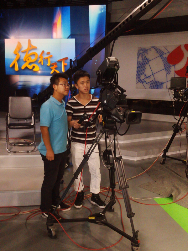 7月19日下午2点,完美官网暑期社会实践小分队成员来到了《德行天下》栏目的录制现场,开始了本次社会实践活动的最后一个环节。小队成员们在工作人员的指导下参与了节目会场布置工作。通过工作人员专业而细致的讲解,大家了解了演播室的区域划分以及各自的功能、录制现场工作人员的分工机制、相关摄影仪器的使用方法及技巧等。这些在大家平时生活当中很少经历的体验,不仅拓展了同学们的知识面,也同时让大家了解到电视制作人的不易。