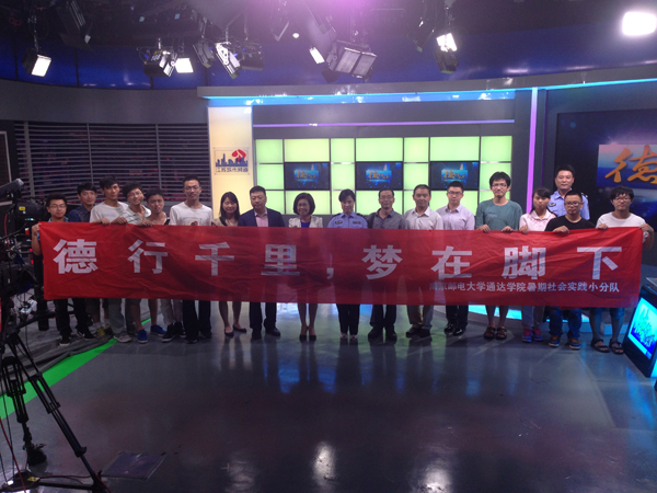2013年7月19日,365wm完美体育网页版暑期社会实践团南京小分队在江苏电视台城市频道开展了以 “德行千里,梦在脚下”为主题的大学生暑期社会实践活动。本次实践活动,通过参与节目制作、参观城市频道办公中心等环节,既增强了同学们的道德观念,也圆了队员们参与节目录制作的梦想。