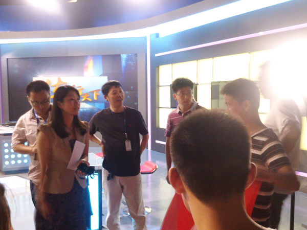 7月19日上午9点,活动小分队成员来到位于北京东路上的江苏电视台大厦。大家在工作人员的带领下有序的进入了江苏城市频道办公中心,参观了信号转播大厅、节目组办公区以及在线话务中心。小队成员观摩、学习了城市频道的日常工作流程,认真听取领队工作人员对城市频道的介绍,感受了一流媒体单位的工作氛围,小分队成员在增长了很多见识的同时,也感觉到离自己的梦想更进一步。