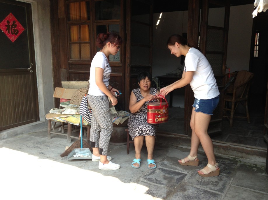 最后,团队在居委会工作人员的带领下,探访了几户生活有困难的人家,其中有的慰问对象身患重病常年瘫痪在床,十分需要社会的关心和帮助。为此,实践分队送去了慰问品,并帮助他们做了力所能及的家务劳动。此外,实践团队还在村里建起了一个临时小课堂,为“留守儿童”讲解大学生活的趣闻乐事,并指导孩子们的暑期作业。
