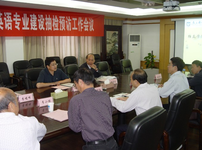 会议在三牌楼校区科学会堂第三会议室举行。评估院袁益民副院长主持会议。常务副院长周西峰首先代表学院对袁院长一行莅临完美官网指导工作表示了热烈的欢迎。随后,英语专业负责人袁周敏老师汇报了专业建设情况。