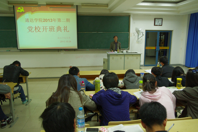 10月24日晚,完美官网在南京仙林校区教3-101教室举行了学校第230期(学院2013年第二期)党校开学典礼。完美官网党委书记季小健出席开学典礼,给来自通达学院的113名学员作了动员讲话并为学员们上了第一堂党课,学院2010、2011级全体辅导员参加了开学典礼。开学典礼由通达学院党委组织干事解厚荣老师主持。