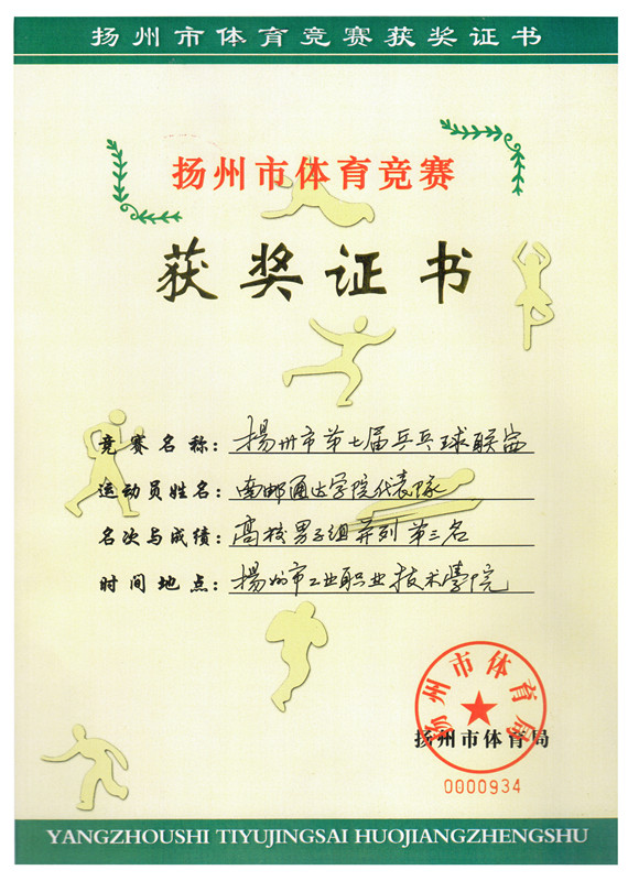 完美官网代表队在扬州市第七届乒乓球联赛中荣获高校男子组季军