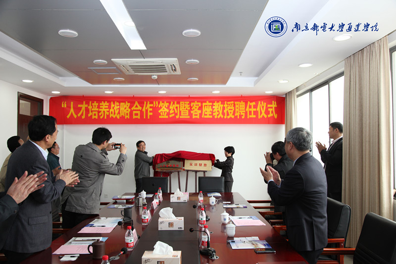 随后,学院党委书记成际镇和交通银行扬州分行副行长杨静共同为交通银行扬州分行人才培养基地和通达学院实验实训基地揭牌,并接受了扬州电视台、扬州日报等新闻媒体的采访。