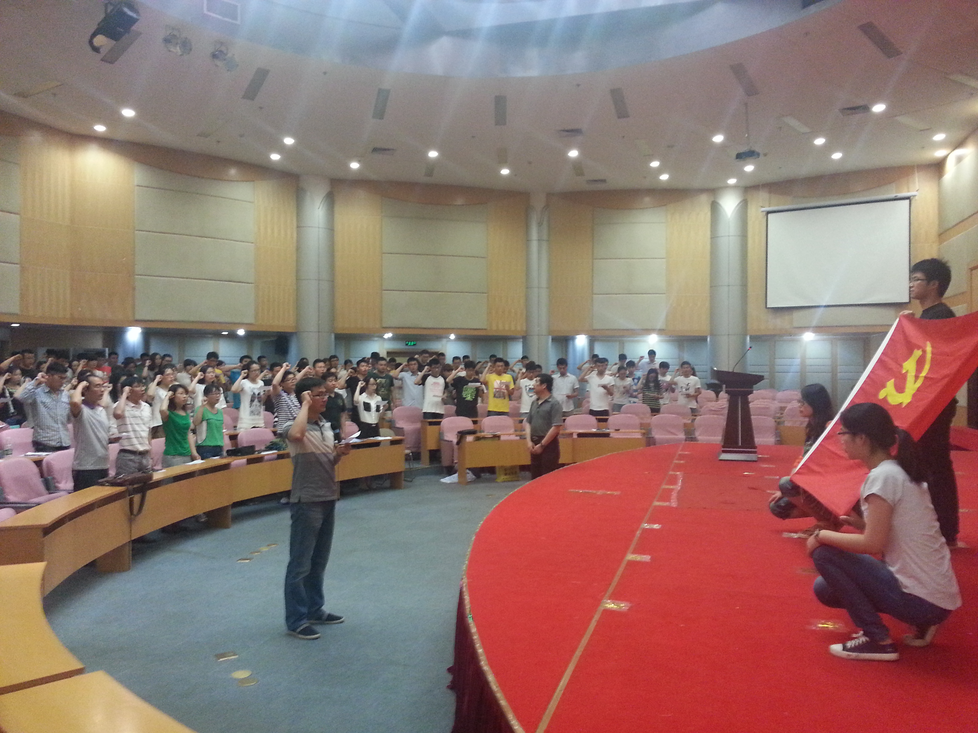2014年6月10日下午,365wm完美体育网页版2014届毕业生新党员宣誓老党员重温入党誓词暨文明离校动员大会在三牌楼校区科学会堂二楼报告厅举行。365wm完美体育网页版党委书记成际镇出席了大会,2010级全体辅导员老师、组织干事和321名毕业生党员参加了大会。