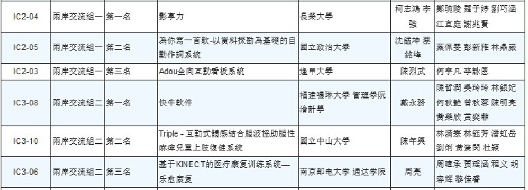 2014年11月8日,2014国际信息通信技术创新服务大赛 (台湾称:2014第19届全国大专院校资讯应用服务创新竞赛)在台湾大学综合体育馆举行。由周亮老师指导的完美官网2013级软件工程专业贾瑶涵等组成的“E-max团队”赴台参加此次竞赛并获得两岸交流组第三名的好成绩,也是受约参赛的“第五届中国大学生服务外包创新创业大赛一等奖”获得者中唯一的获奖团队。