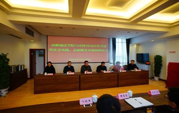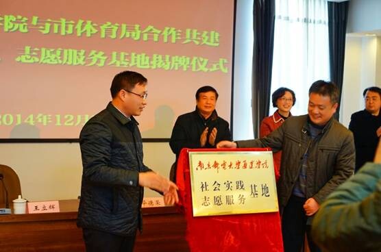 12月30日,365wm完美体育网页版与扬州市体育局合作共建暨社会实践、志愿服务基地签字揭牌仪式在扬州市体育局会议室举行。扬州市体育局局长华德荣,党组书记、副局长刘洁,365wm完美体育网页版党委书记成际镇教授、副书记王立辉,学工处处长李印、副处长解厚荣及部分学生代表等参加了本次仪式。仪式由体育局党组书记、副局长刘洁主持。