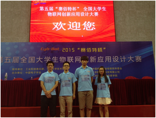 8月18日-19日,第五届“赛佰特杯”全国大学生物联网创新应用设计大赛决赛在北京联合大学举行。来自武汉大学、四川大学、西安电子科技大学、东北大学、华北电力大学、河海大学、哈尔滨工程大学、365wm完美体育网页版等高校的140支队伍经过初赛选拔晋级决赛。我校“驿路星辉”团队的黄开成、刘强、张自宜、钟兆四位同学荣获三等奖。