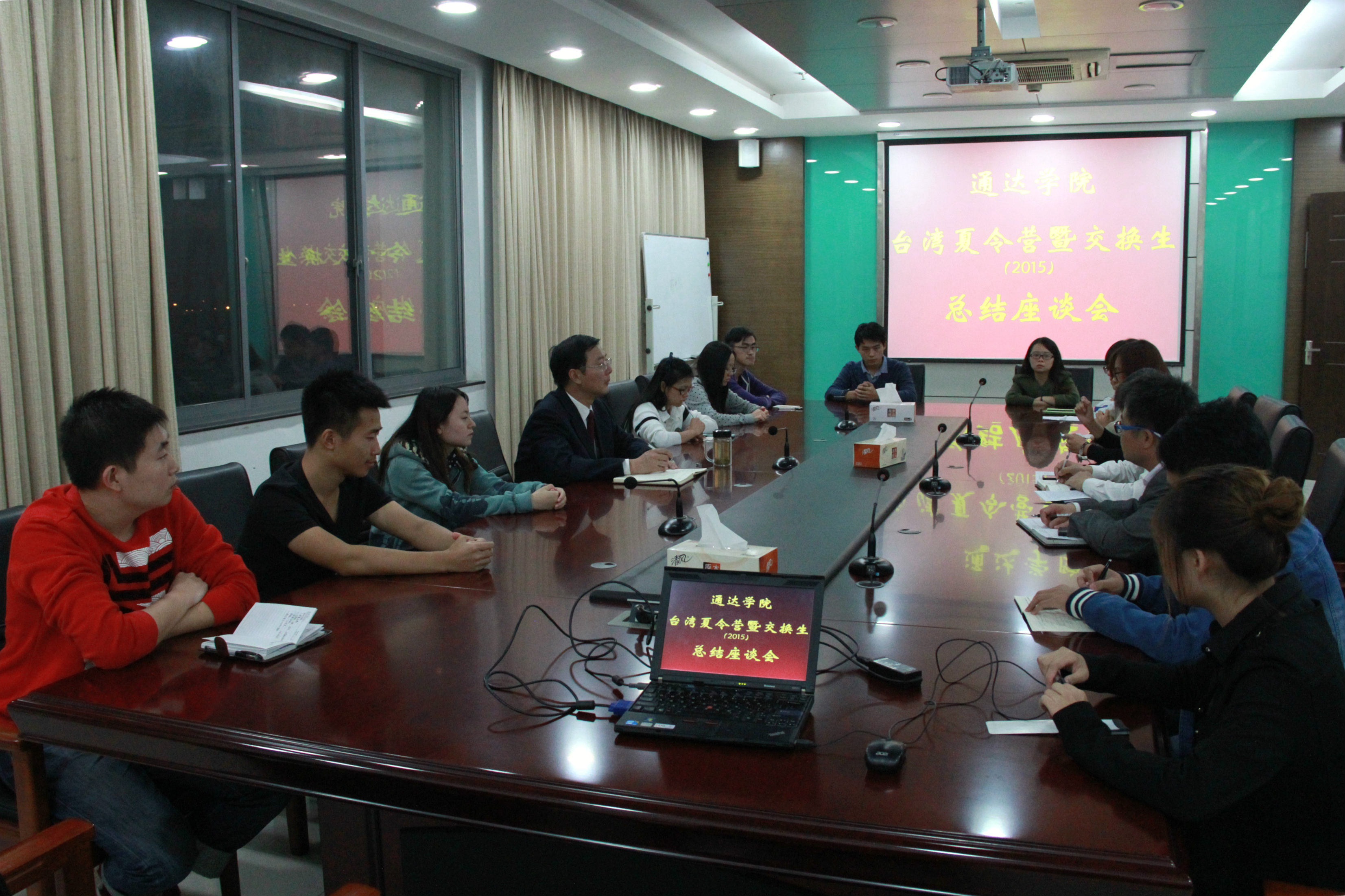10月14日晚上,学院召开了暑期赴台参加夏令营活动暨赴台交换生总结座谈会。学院党委书记戴兆骏、教务处处长王志军等参加了座谈会。