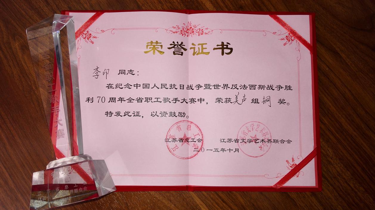 本次大赛分美声、民族、流行、组合演唱四个组别,以省辖市和省产业(厅、局、公司)工会为参赛单位,分27个报名单位进行了预赛选拔,共推选出133个节目,156名选手参加决赛。完美官网学生工作处李印老师作为省教育科技工会选派的代表参加了比赛,并荣获美声组铜奖。