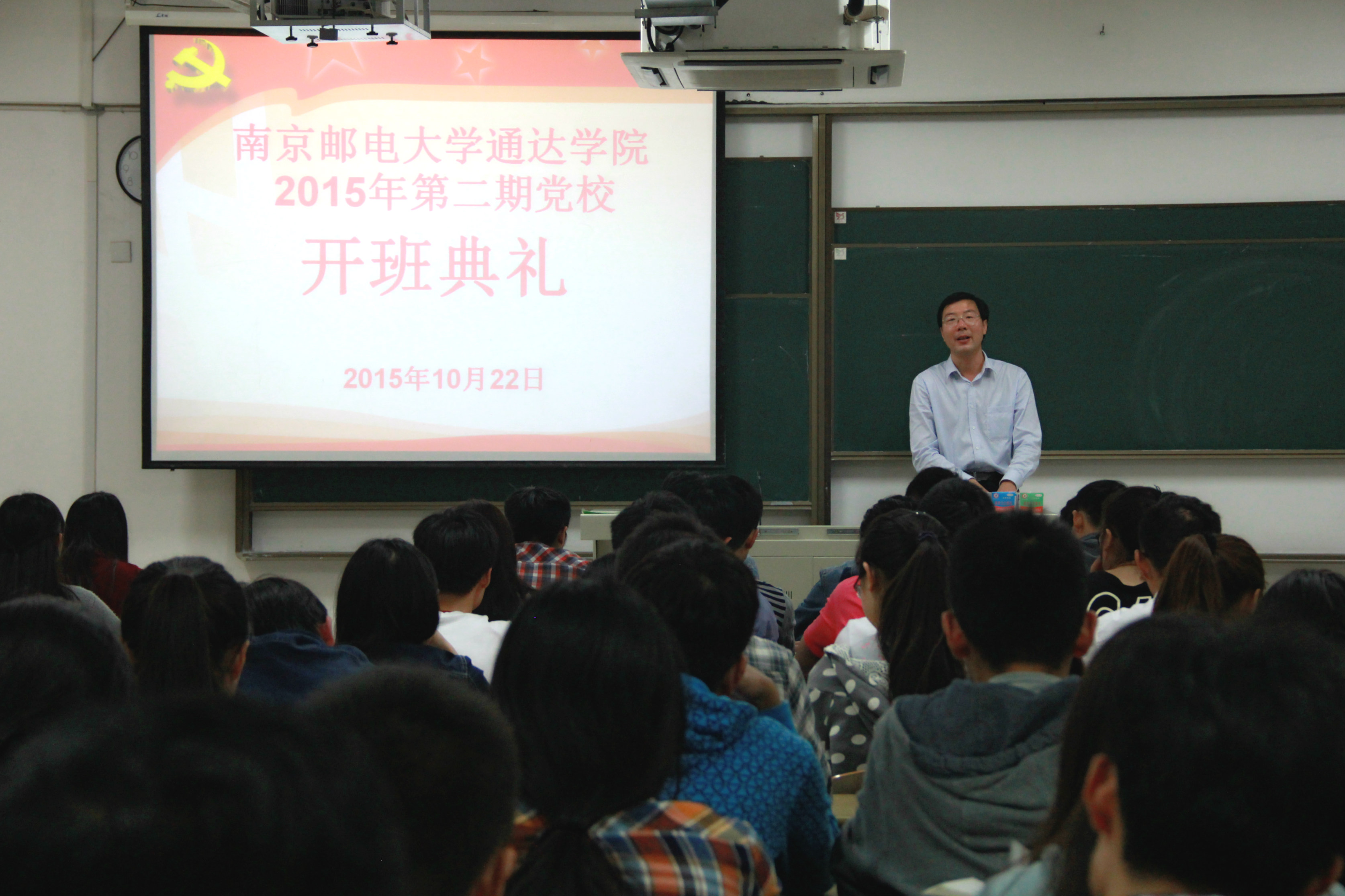 10月22日晚,365wm完美体育网页版第281期暨通达学院2015年第二期入党积极分子培训班开班典礼在扬教1303隆重举行,全院106名入党积极分子参加了本期培训班。院党委书记戴兆骏、党办主任葛超、组织干事任建蕊、2012级、2013级辅导员出席开班典礼。开班典礼由党办主任葛超主持。