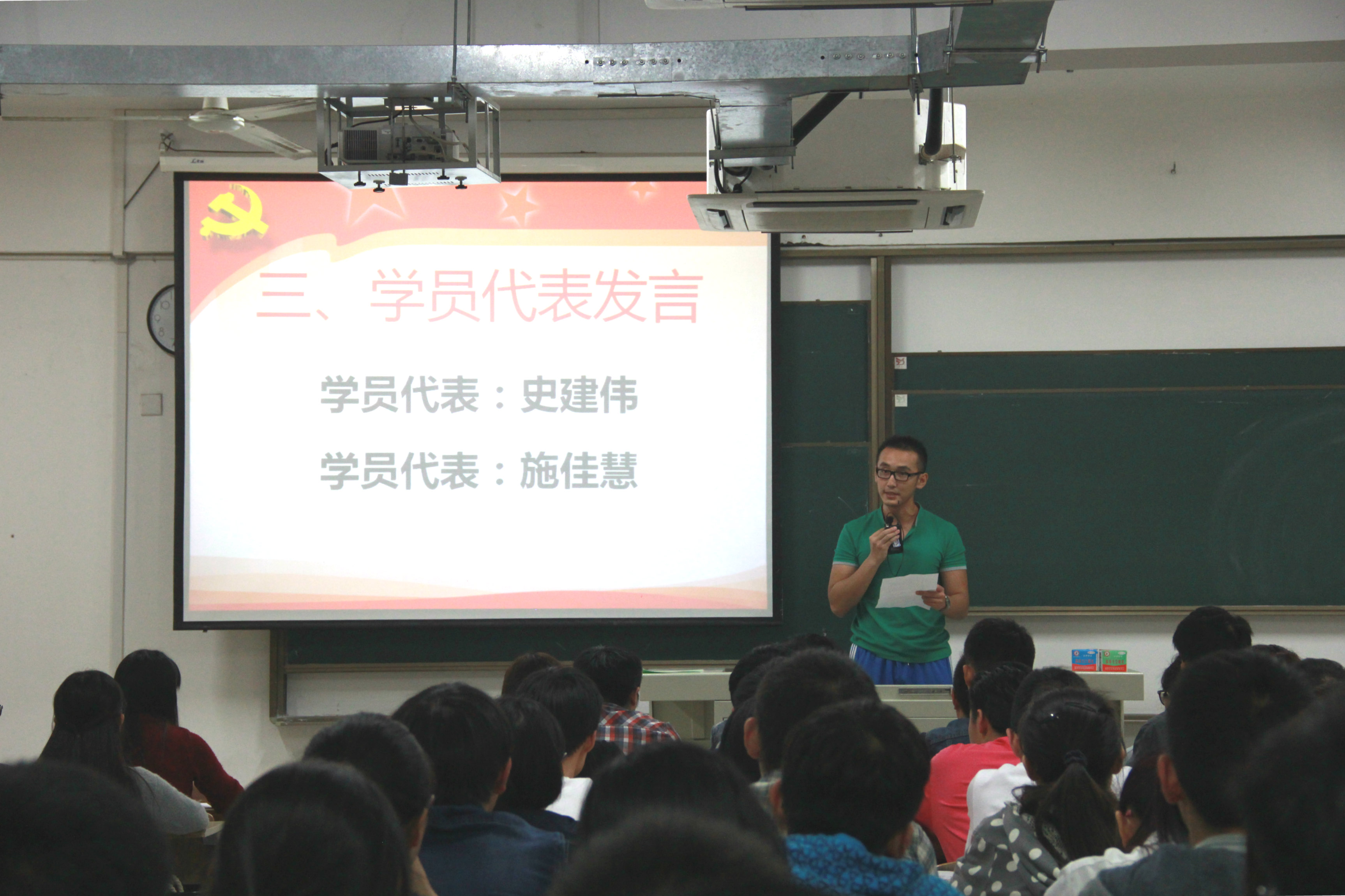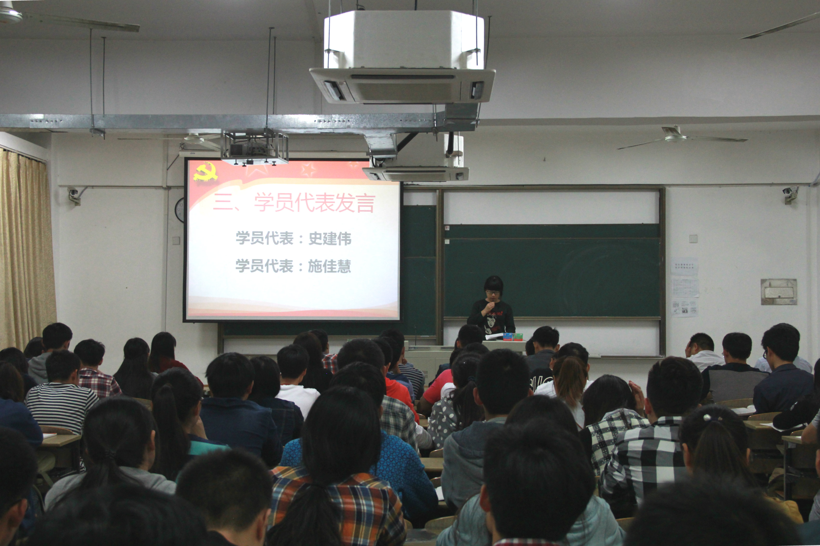 在开班典礼上,组织干事任建蕊介绍了培训计划与学习要求。培训班学员代表2013级通信工程专业史建伟同学、2013级计算机科学与技术(网络安全)专业施佳慧同学先后作了发言。