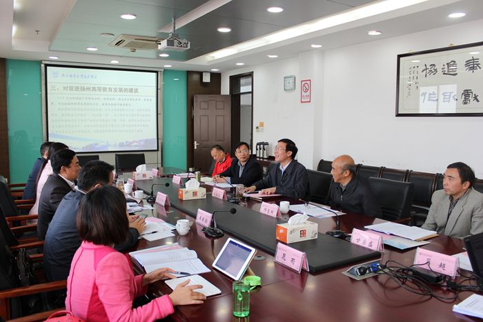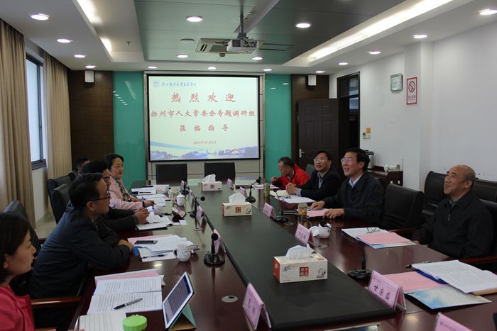 11月3日下午,市人大常委会教科文卫工委主任沈宏跃、副主任江晓昀,市委教育工委副书记王朝勃等一行五人来完美官网开展推进扬州高等教育发展专题调研。完美官网党委书记戴兆骏、副院长师崇群、党委副书记王立辉、院长助理甘宗盛、许明,院办、党办主任葛超出席调研座谈会。会议由党委书记戴兆骏主持。