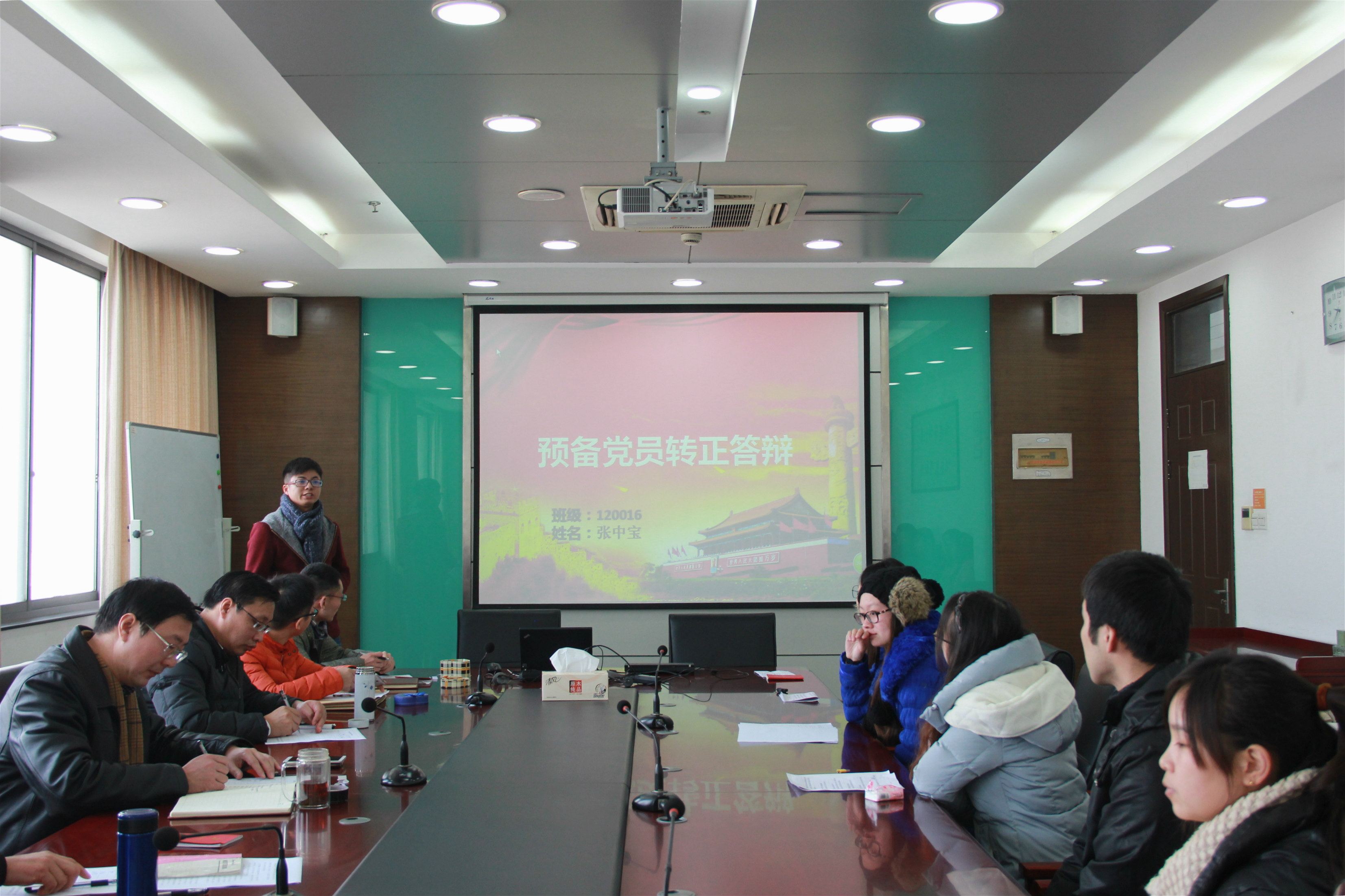 12月29日上午,学院2015年第五批预备党员转正答辩在行政楼10楼会议室举行。相关党支部负责人、预备党员及转正答辩者近30人参加答辩会。答辩小组由院党委书记戴兆骏、院党委副书记王立辉、党办主任葛超、学生党支部书记余西亚、徐永华、李敏和组织干事任建蕊组成。