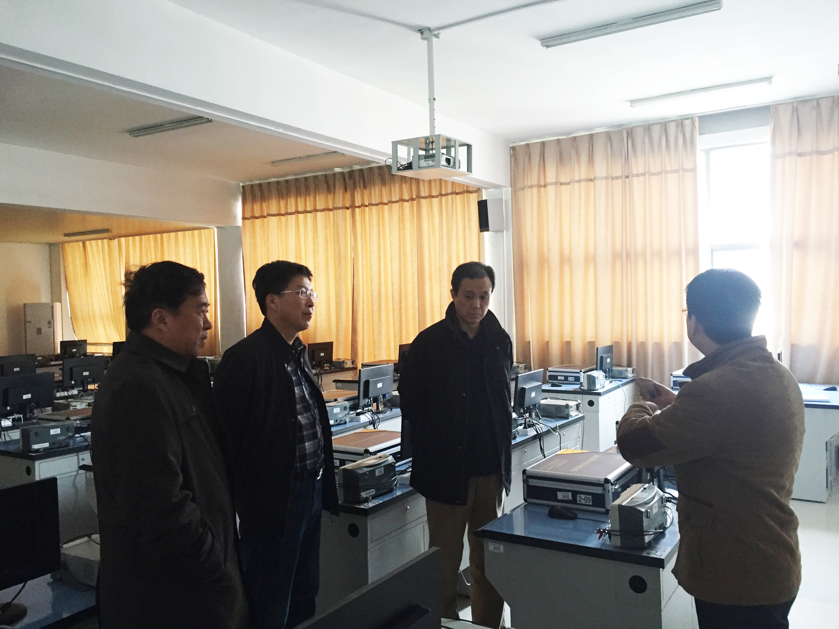 在教保处处长黄岩峰、副处长时卫东陪同下,宗平院长一行先后视察了计算机实验室、媒体实验室、电工电子和通原实验室、自动化综合实验室、物理和光电综合实验室,听取了黄岩峰处长对实验室情况的整体汇报,了解了实验室的建设、管理、调整和使用情况。