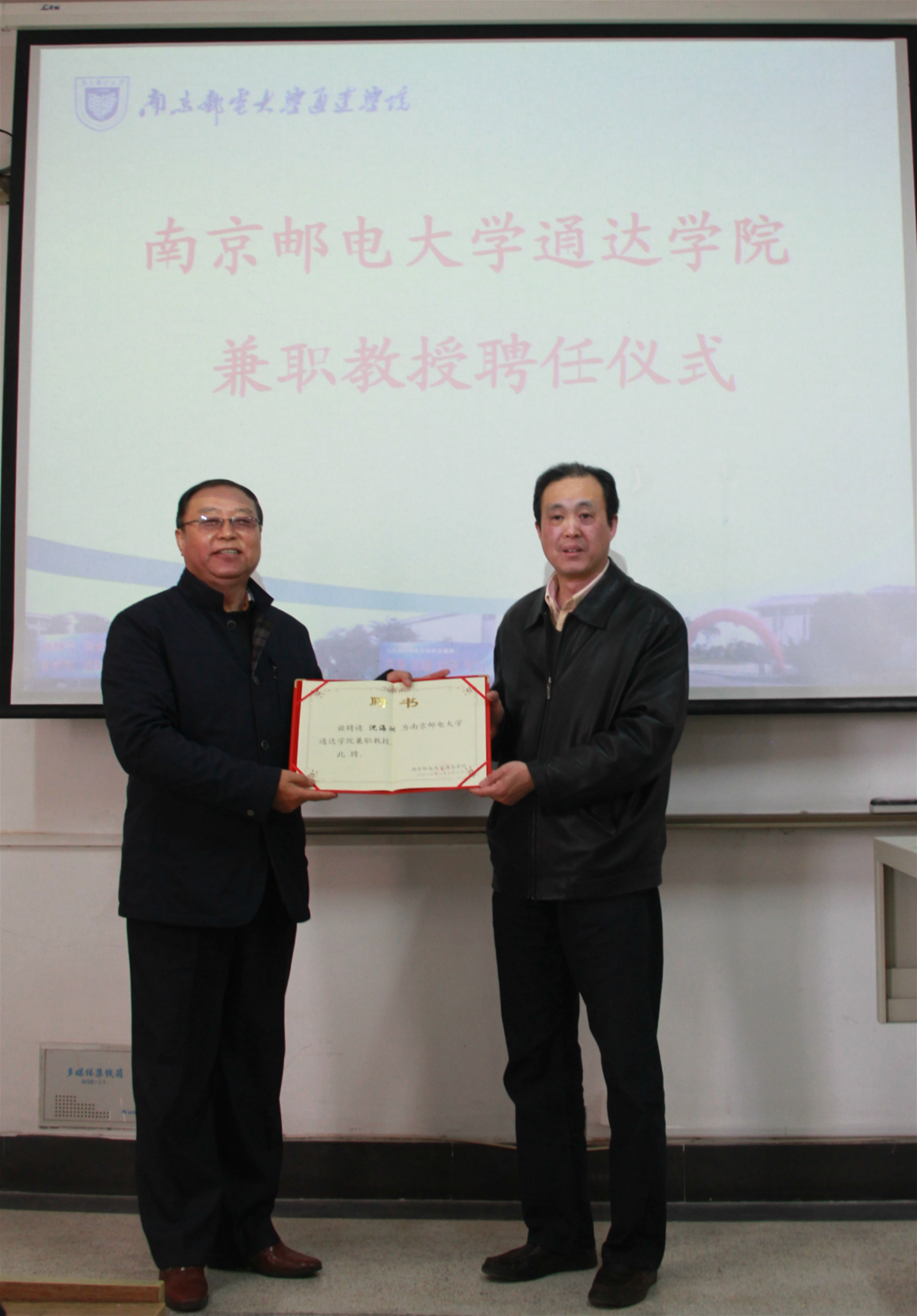 3月23日下午,南京邮电学院通达学院兼职教授聘任仪式在扬教1207举行,院长宗平教授、副院长包刚、副书记王立辉出席,相关专业师生代表参加了聘任仪式。