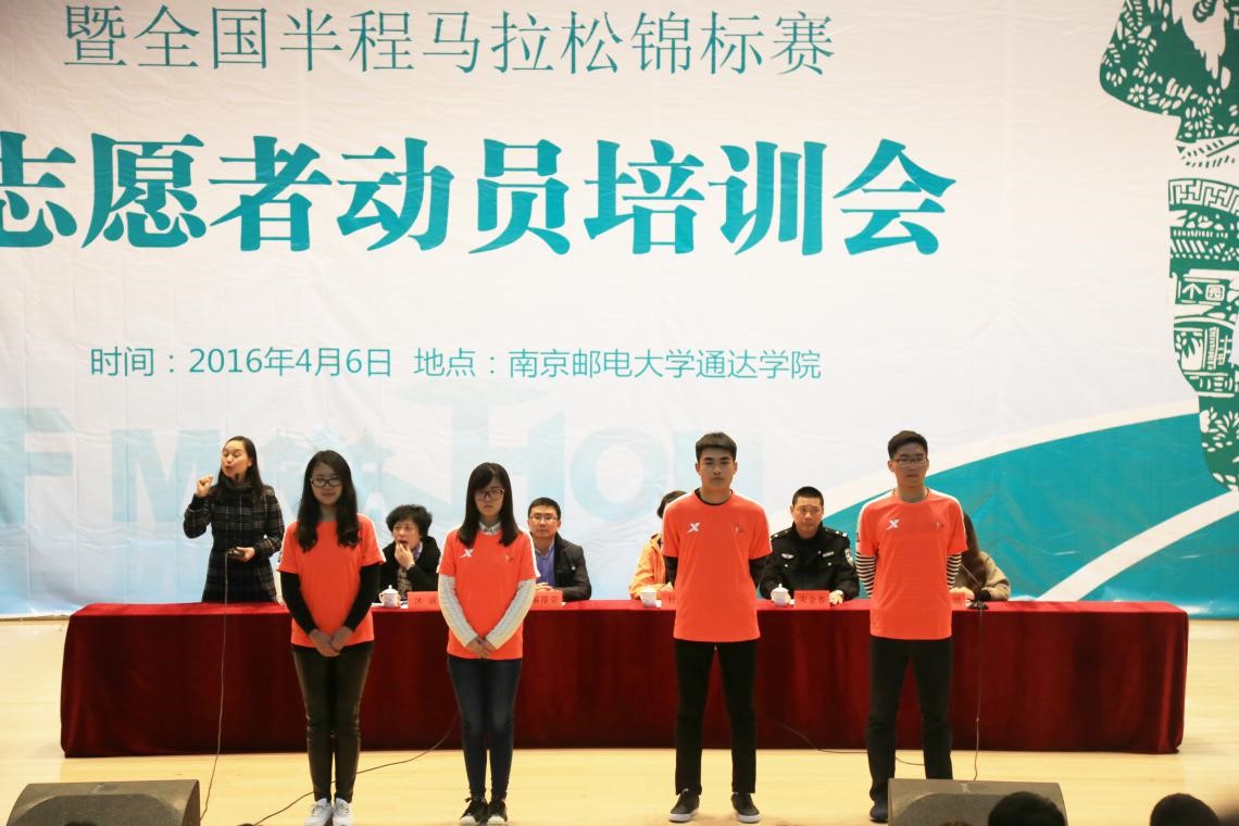 扬州体育局竞赛管理中心主任杜斌介绍了2016年的赛事筹备情况;扬州市公安局治安防范大队教导员宋金春为同学们讲解了突发事件应急处理的办法;扬州市卫生局应急办主任沐诚讲解了赛事急救站点布置及常规性运动员损伤处理办法;扬州大学礼仪指导老师周媛带着四位扬马志愿者代表上台,为大家讲解志愿服务礼仪细节。