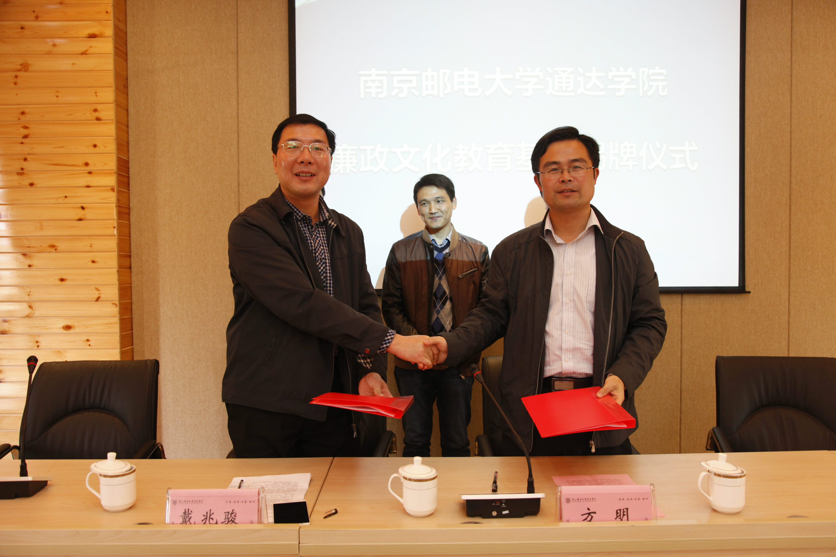 仪式上,院党委戴兆骏书记与仪征市枣林湾生态园管委会纪工委书记方明签署了《365wm完美体育网页版与仪征市枣林湾生态园管委会廉政文化教育基地共建协议》;副院长包刚与枣林湾生态园管委会纪工委书记方明共同为学院“廉政文化教育基地”揭牌;方明书记和戴兆骏书记分别致辞。