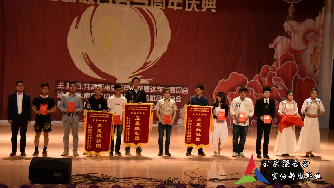 晚会期间,举行了星级社团的颁奖仪式,4+1街舞社、流火轮滑社、英语协会获得了五星级社团荣誉称号。