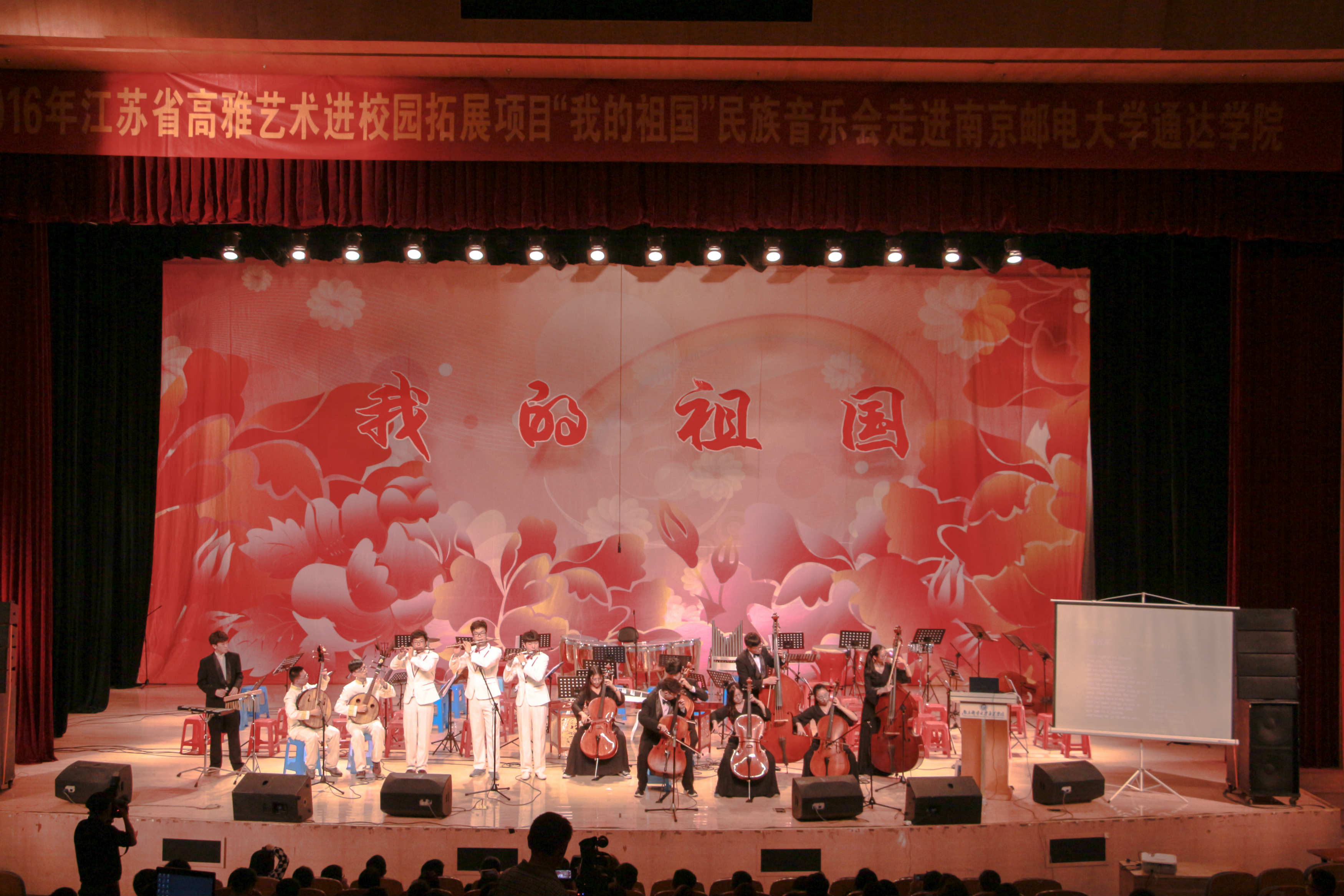 5月6日晚,2016年高雅艺术进校园拓展项目《我的祖国》民族音乐会在完美官网大学生活动中心大礼堂演出。《我的祖国》民族音乐会由江苏省委宣传部、江苏省教育厅、江苏省财政厅主办,南京理工大学和完美官网承办,为完美官网师生献上了一台精彩的音乐盛宴。