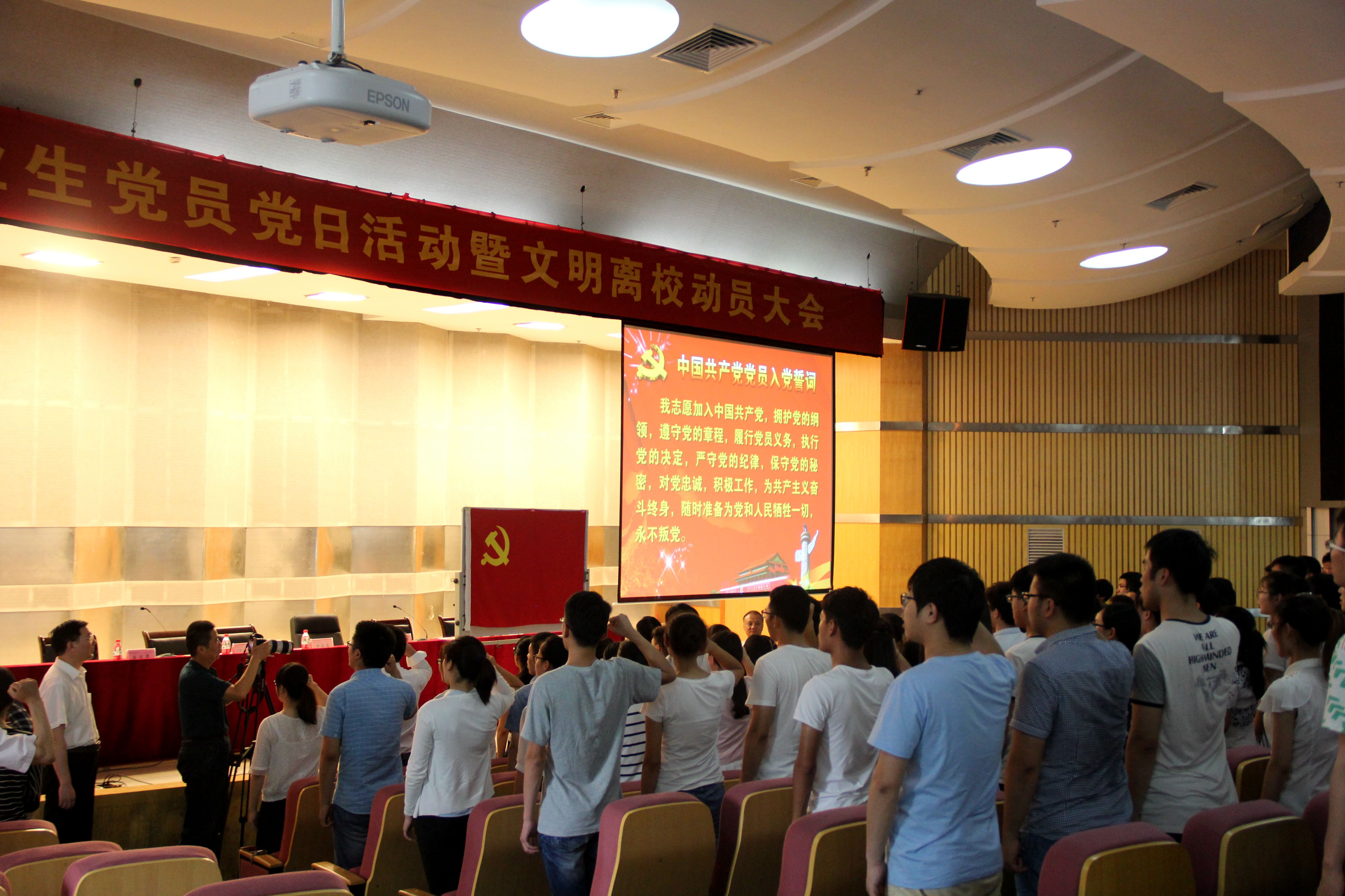 离校前的重温入党誓词和专题党课活动,是一次对2016届毕业生党员的思想洗礼,进一步激励了毕业生党员坚定爱党、信党、跟党走的理念,坚定为共产主义事业而奋斗终身的信心和决心。近期,学工处会同各毕业年级学生党支部,开展了文明离校系列活动,组织毕业生党员亮身份、树形象,争做文明离校表率。
