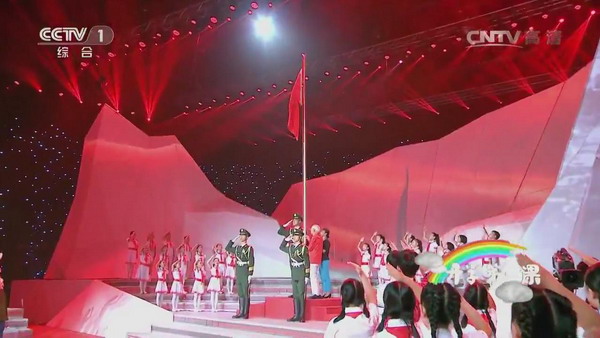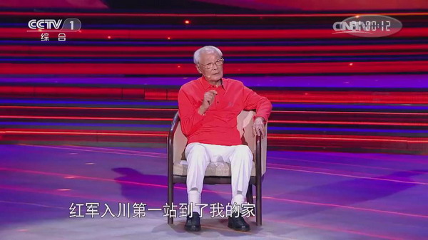 在现场特别的升旗仪式上,秦老作为老红军代表升国旗