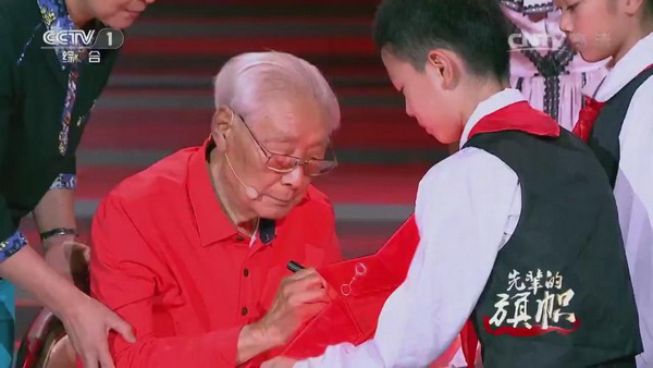 秦老还和其他几位讲述长征故事的老红军、开国将帅后代一样,在一颗红五星上签上自己的名字,希望红五星散发的光芒可以指引更多的人。