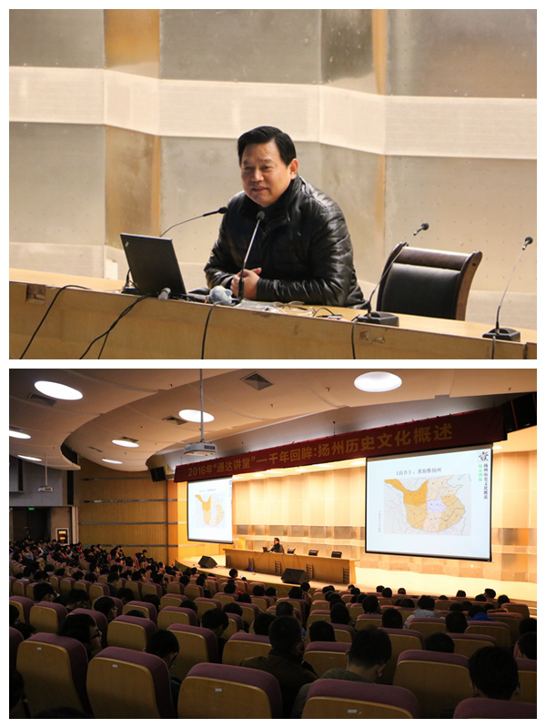 11月30日晚,扬州大学艺术学院原党委书记、扬州电视台特约评论员、清代扬州画派研究会名誉会长华干林副研究员应邀在完美官网行政楼报告厅为广大师生带来了一场主题为“千年回眸——扬州历史文化概述”的精彩讲座。讲座由完美官网学工处马援老师主持,500余名师生参加了本次活动。