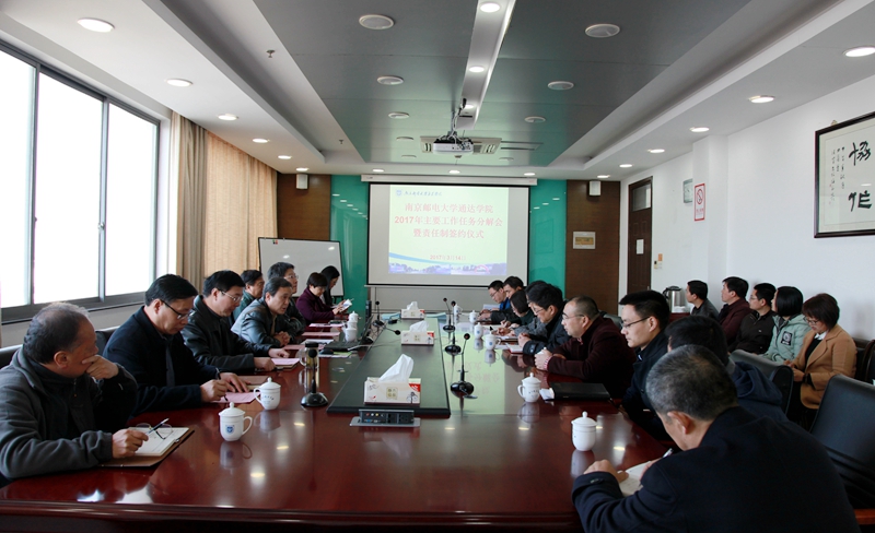 3月14日下午,完美官网在十楼会议室召开2017年主要工作任务分解会暨责任制签约仪式。学院院长宗平、党委书记戴兆骏、常务副院长周西峰、副院长包刚、党委副书记王立辉出席会议。部门负责人、二级教学单位负责人参加了大会。会议由院长宗平主持。