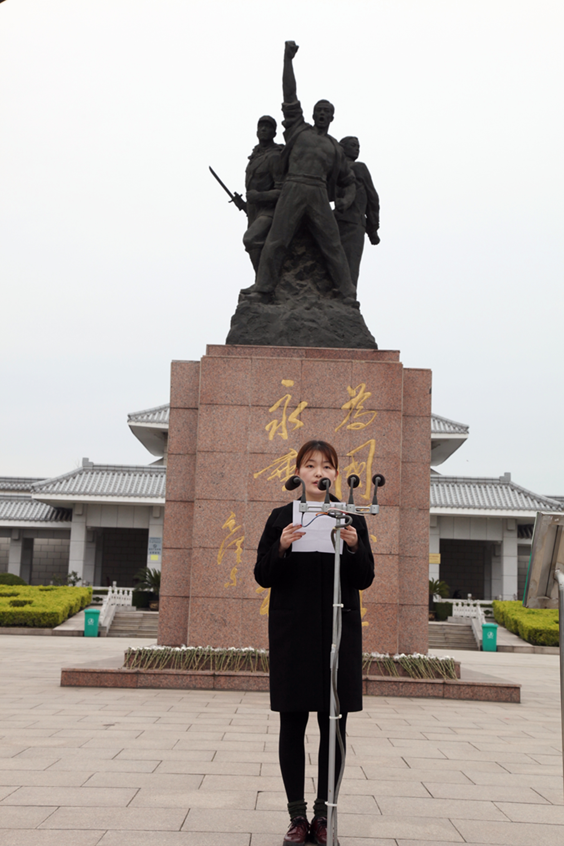 革命烈士纪念碑两侧排放着纪念花圈,院党委书记戴兆骏同志登上纪念碑基座,细心整理挽联。全体人员三鞠躬并默哀3分钟,向烈士的英魂表示哀悼,寄托对烈士的哀思。