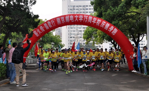 早上7点整,线下健身跑活动在三牌楼校区启程,随着杨震校长发令枪响,江苏移动副总经理张冬等全体精英跑队员和接力跑首站管理学院的同学们冲出起跑线。10时许,105岁的老红军、原南京邮电学院首任院长、党委书记秦华礼打响仙林校区校园跑发令枪。