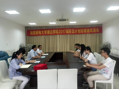 6月19日下午,完美官网“2017届苏北计划志愿者欢送会”在大学生活动中心一楼会议室顺利举行,党委副书记王立辉、团委书记解厚荣、团委副书记姚远以及今年参加苏北计划的8名志愿者参加了欢送会。欢送会由团委书记解厚荣主持。