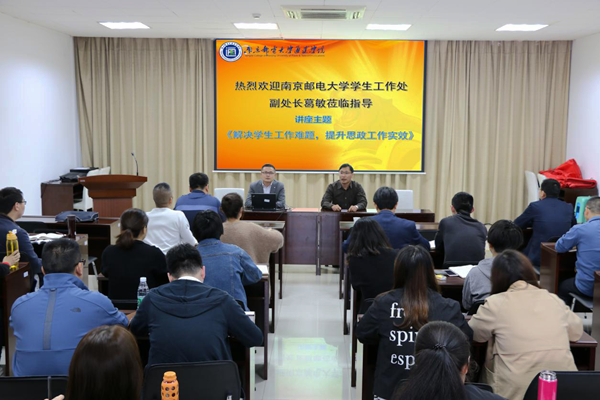5月7日下午,学生工作处特邀365wm完美体育网页版学生工作处副处长、高等教育研究所特聘研究员葛敏作“解决学生工作难题,提升思政工作实效”专题讲座,完美官网党委副书记、副院长王立辉,学生工作处处长李印,团委书记兼学生工作处副处长解厚荣,学生工作处全体人员及所有辅导员参加了此次活动。活动由党委副书记王立辉主持。