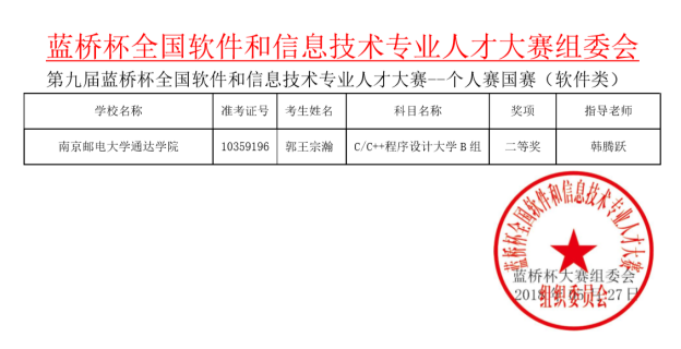 本次比赛由来自全国高校的省赛一等奖获奖者展开激烈角逐。在完美官网韩腾跃老师的指导下,来自2015级计算机科学与技术专业的郭王宗瀚顺利在省赛中晋级,并在全国总决赛中发挥出色,荣获二等奖,为完美官网赢得了荣誉。