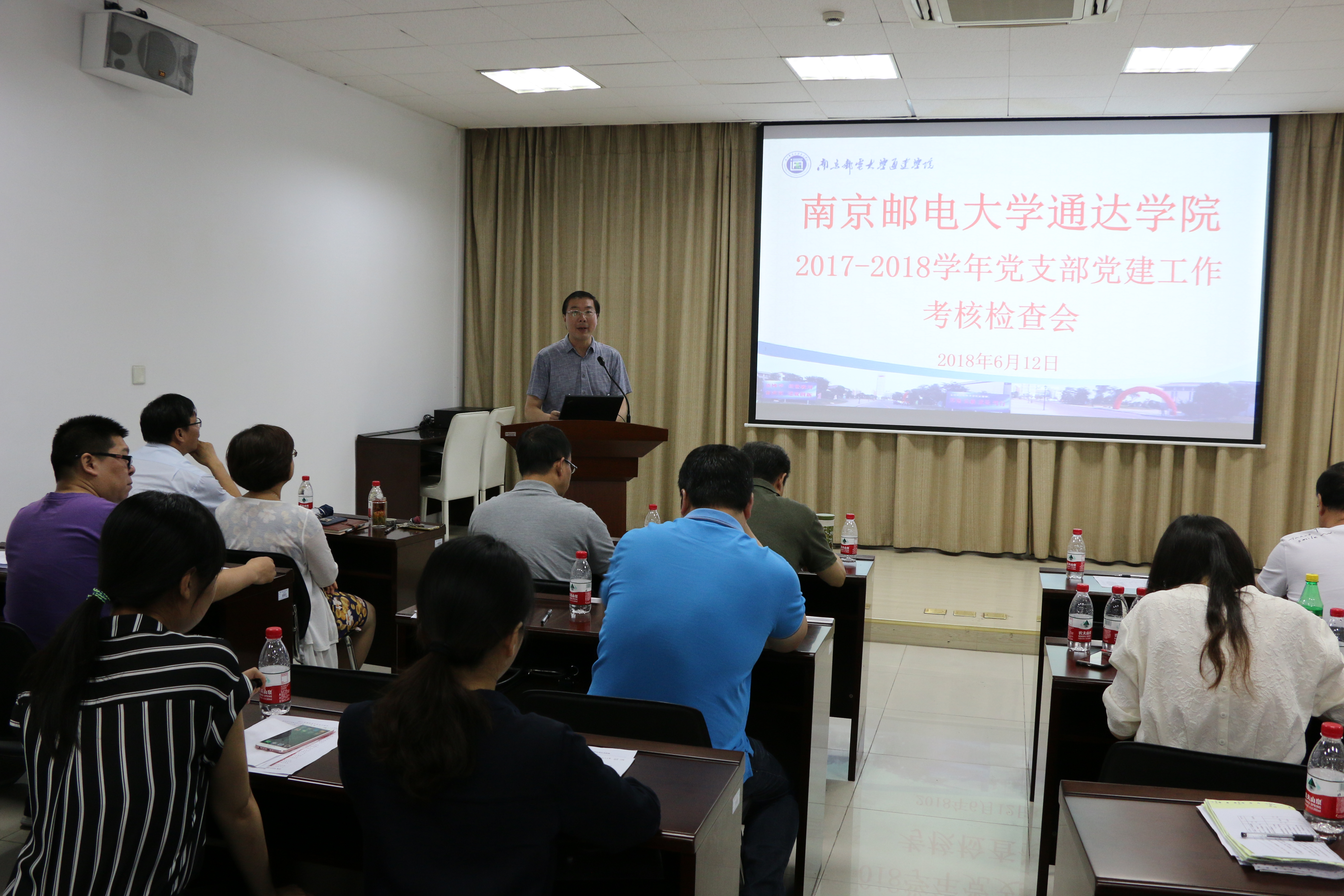 6月12日下午,学院党委在大学生活动中心一楼会议室召开了2017—2018学年党支部党建工作考核检查会。全体院党委委员及考评小组成员参加了会议。会议由副书记王立辉同志主持。