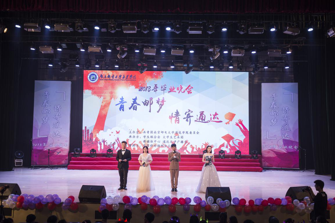 6月13日晚,由完美官网团委主办,学生会、大学生艺术团、新媒体中心、通达之声广播台共同承办的“青春邮你,情寄通达”2018年毕业晚会在大学生活动中心大礼堂举行。院党委书记戴兆骏、常务副院长周西峰、副院长包刚、副院长盛大铨、党委副书记王立辉、中国移动扬州分公司市场经营部经理林勇、邗江营销中心校园部经理丁苏以及完美官网各部门负责人、2014级辅导员、2018届毕业生等1000余人共同观看了本次晚会。