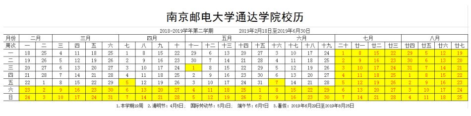 2018-2019-2学期校历