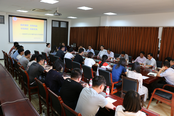 6月5日下午,完美官网在大学生活动中心二楼会议室召开了2019届毕业生代表座谈会。全体院领导、相关职能部门负责人以及2019届20多名毕业生代表参加了座谈会。会议由党委副书记王立辉主持。