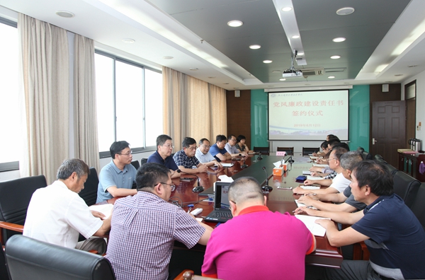 6月12日下午,学院在行政楼10楼会议室召开了“未巡先改、自查自纠”工作部署会暨《党风廉政建设责任书》和《校园治安综合治理、消防安全责任书》签约仪式。院党政领导、党委委员、各二级部门单位主要负责人参加会议。会议由院党委书记汪业周主持。