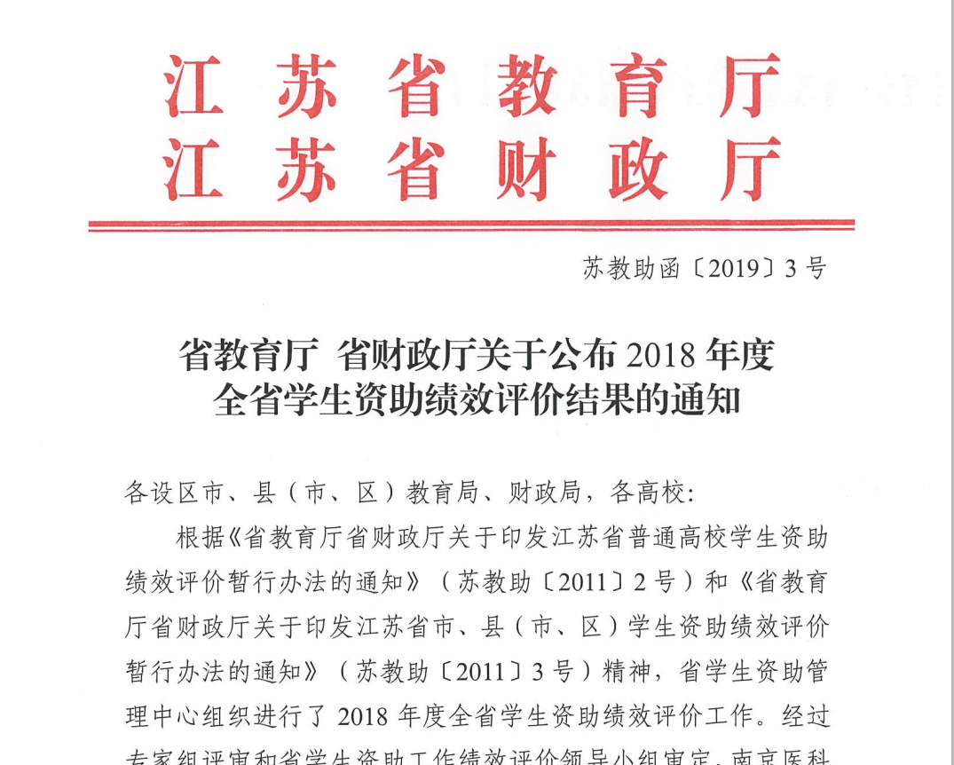 近日,江苏省教育厅和财政厅联合发布了《关于公布2018年度全省学生资助绩效评价结果的通知》(苏教助函﹝2019﹞3号)文件,完美官网2018年度学生资助工作绩效评价结果为“优秀”,这是完美官网在学生资助工作方面取得的一次突破性成绩。