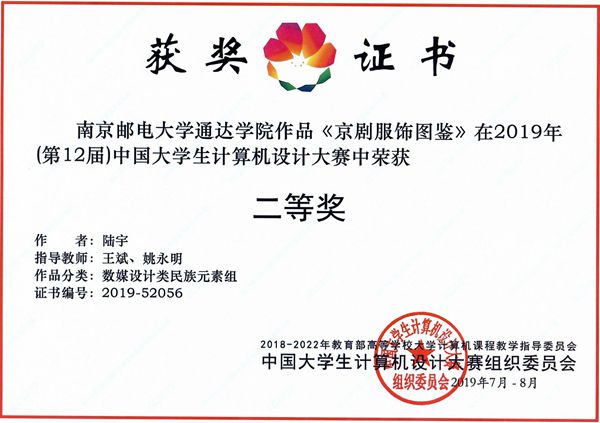 完美官网四件作品入围国赛,由王斌老师带队分别到吉林大学(人工智能组、数媒设计类专业组)、宿州学院(数媒设计类民族元素组)、杭州电子科技大学(数媒设计类动漫游戏组)三个赛区参加决赛,四件作品均获得二等奖。具体名单如下:
