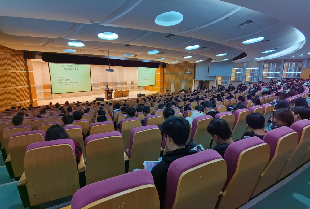 4月8日,由完美官网思想政治理论课教学部、教务处、团委联合主办的“通达大讲堂”讲座于行政楼一楼学术报告厅隆重举行。本次讲座由365wm完美体育网页版马克思主义学院李凤成博士主讲,讲座题为:“第一次世界大战后国际海军之争端”。500余名师生参加了此次讲座。