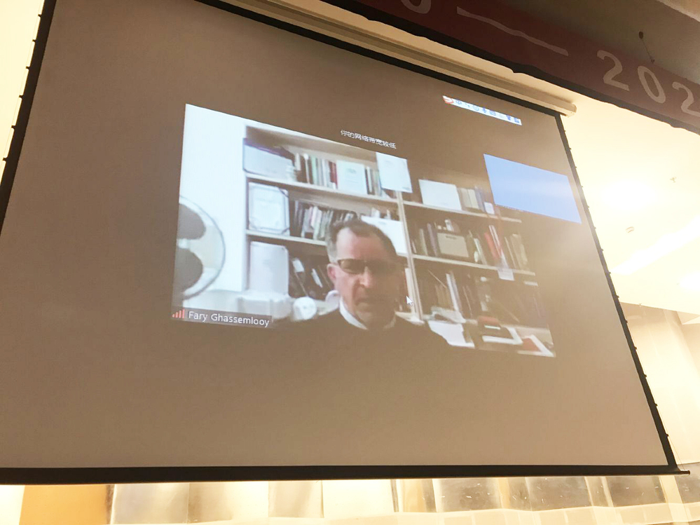 此次年度联合学术讲座采用线上线下混合形式。线上部分邀请诺森比亚大学工程与环境学院(研究与创新)副院长Ghassemlooy教授作了“The World of Visible Light Communications”的学术报告,报告从可见光通信的原理、优势、应用场景等方面,介绍了可见光在通信方面的运用。线下部分由余健教授主讲,余教授结合自身发展的经历,做了题为“What to Expect from Sino-UK Educational Experience”讲座,鼓励学生从自问“我要想做什么”开始,思考如何规划学业,明确目标,为今后的发展做好准备。