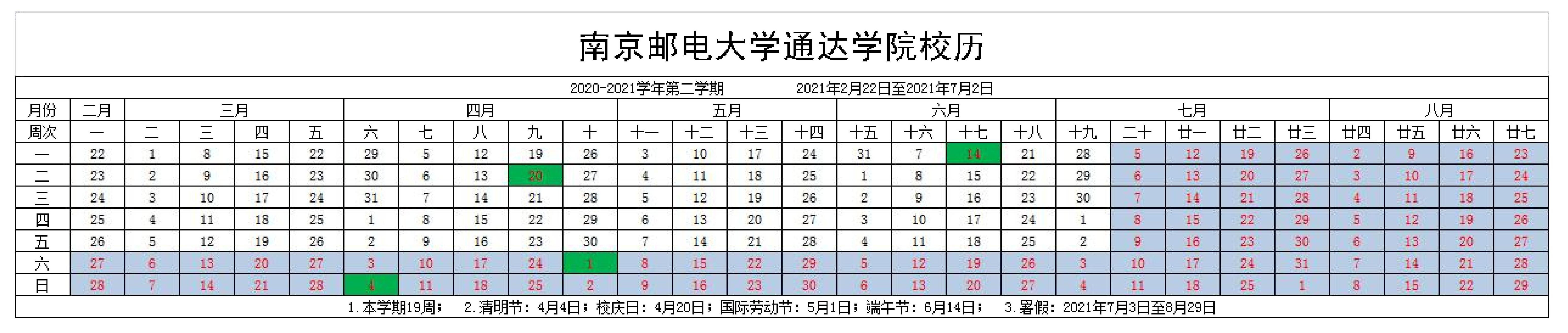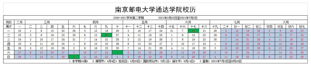 2020—2021学年第二学期校历