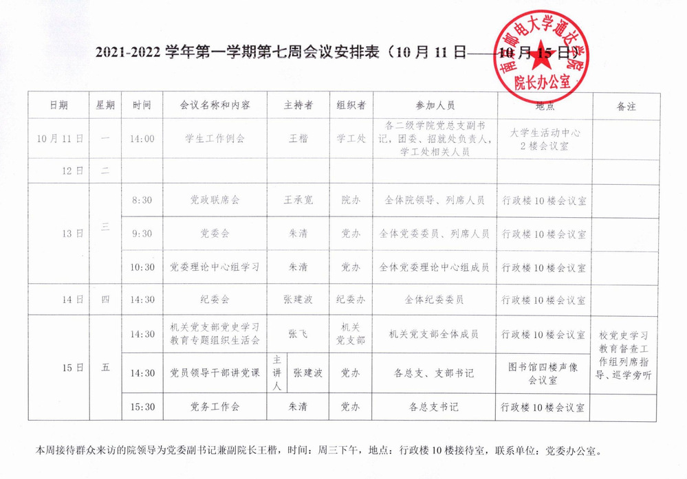 2021-2022学年第一学期第七周会议安排表