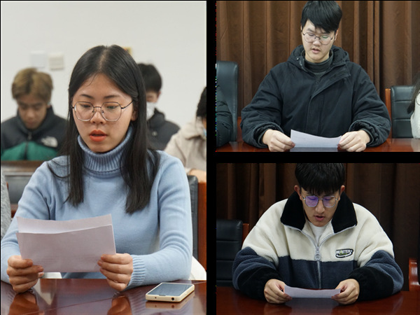 支部委员、学生会主席孙浩楠结合自身及工作谈了三点学习体会。一是要立足平凡岗位,用踏实奋斗书写青春荣光。二是要练就过硬本领,以青春之我投身强国伟业。三是要汇聚磅礴力量,把最美青春献给祖国人民。