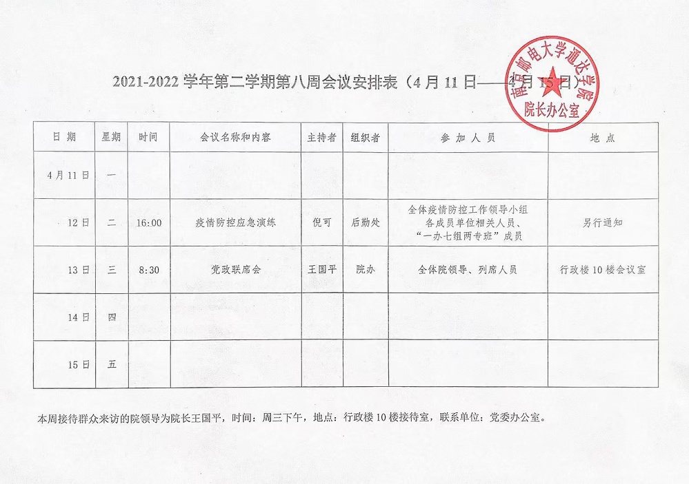 2021-2022学年第二学期第八周会议安排表
