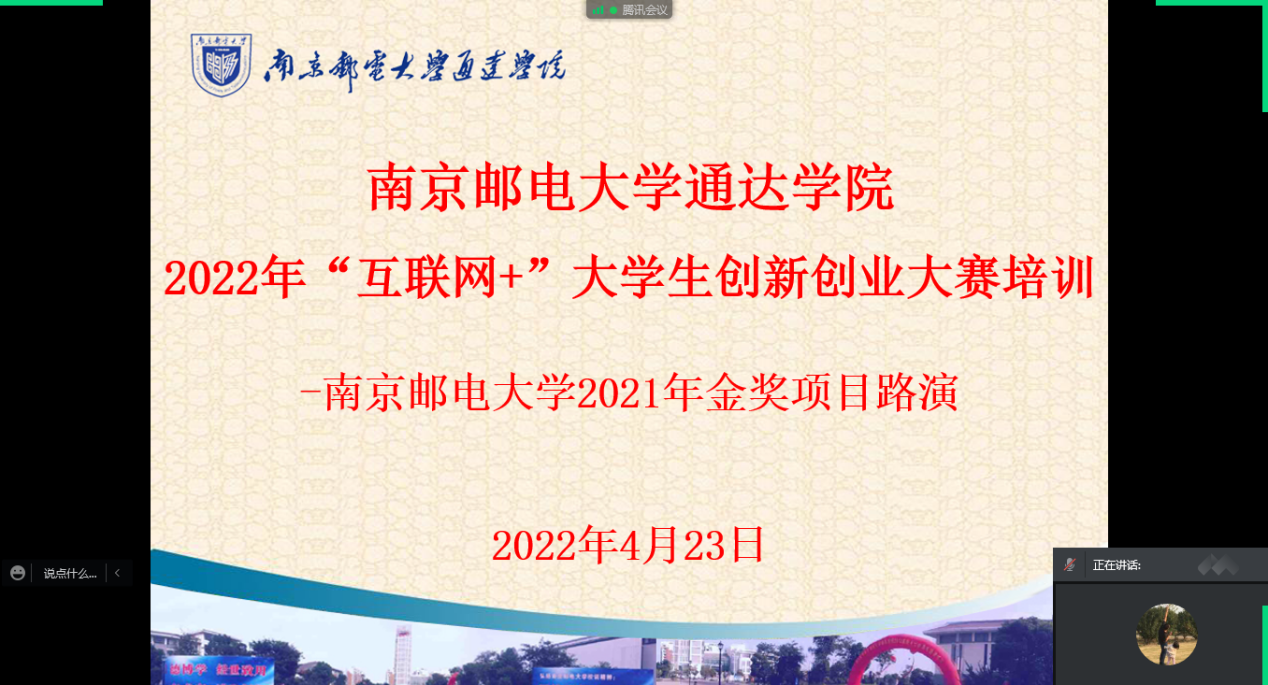 4月23日上午,完美官网线上召开2022年“互联网+”大学生创新创业大赛培训会,会议邀请了365wm完美体育网页版2021年金奖项目负责人进行路演演示、经验分享以及互动答疑。各二级学院教学院长、教学秘书、相关指导老师及参赛同学参加会议。