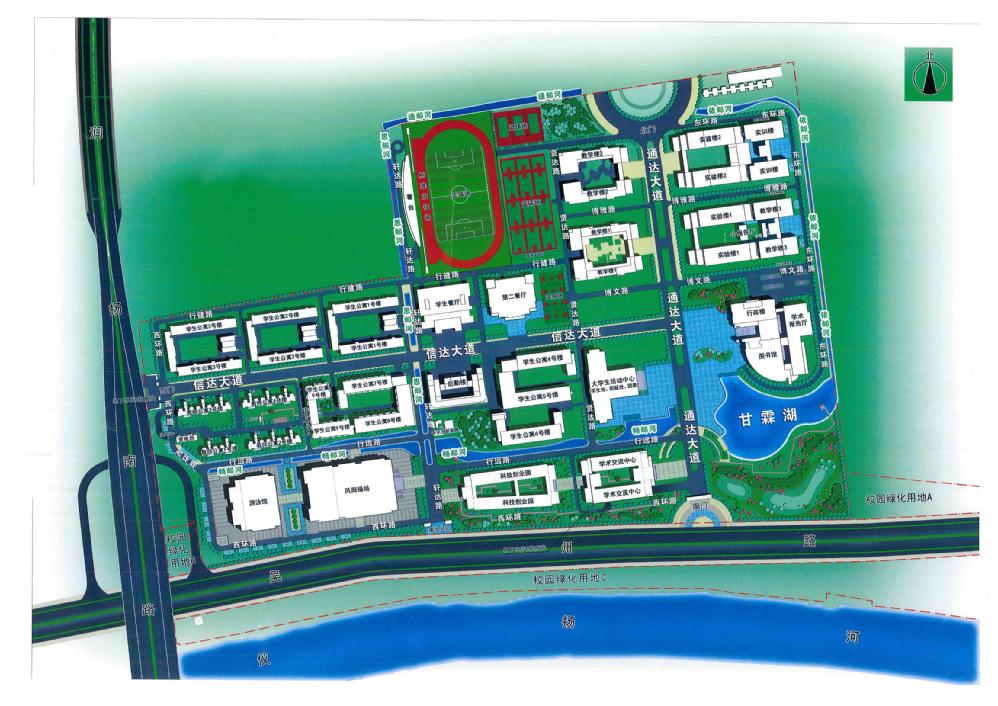 通邮河:位于二号教学楼北侧,经青年街转盘,延至田径场西侧。通达学院源自南邮,“通”“邮”既有通达、又有南邮元素,寓意通达与南邮紧密相连。