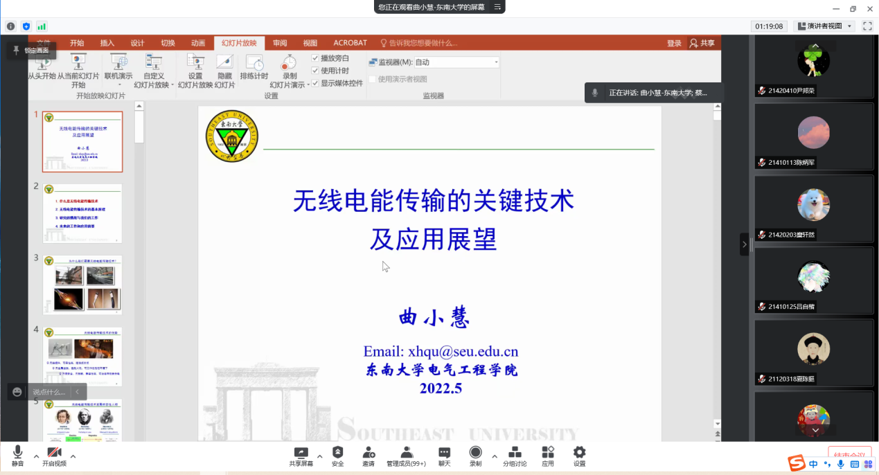 5月6日晚,应电气工程学院的邀请,东南大学曲小慧教授为完美官网师生作题为《无线电能传输的关键技术及应用展望》的学术报告,报告由电气工程学院副院长蔡晓敏主持。